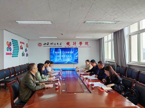 副院长高艳云,统计学系党支部书记李俊明,统计学系主任王涛和副主任刘晓艳参与交流。调研期间,双方围绕人才培养方案优化、课程体系调整、实践教学改革等关键议题深入研讨。