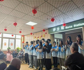 银铃陪伴显真情。3月5日,在第62个"学雷锋纪念日"这个特殊的日子里,志愿者们走进太原市欣宁护理院,开展"雷锋精神照夕阳"主题活动。活动现场,《当那一天来临》的激昂旋律与《学习雷锋好榜样》的经典歌声交织回荡,唤起了老人们的青春记忆。手指操教学环节,志愿者们俯身示范,手把手教导《啊啦桑桑》手指操;手工制作区,五彩的扭扭棒在老人们的巧手下化作朵朵鲜花,欢声笑语中传递着浓浓的温情。